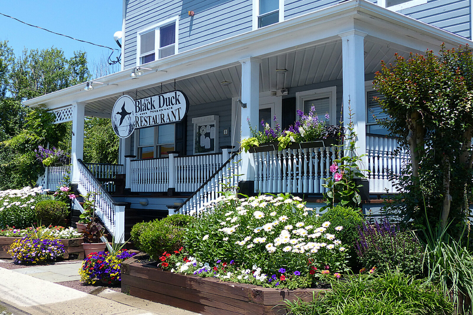 At the top of Sunset Boulevard in West Cape May rests The Black Duck on Sunset Restaurant. Nestled in a traditional seashore gray clapboard house, The Black Duck on Sunset is only moments away from the Washington Street Mall and the heart of the historic district of Cape May, It is also conveniently located on the way to Cape May's Lighthouse, the Concrete Sunken Ship and the New Jersey Audubon Society's popular observatory at Cape May Point.